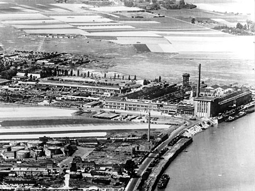 Aerial View of Ford-Werke Plant with Rhine River, Cologne, 1947
